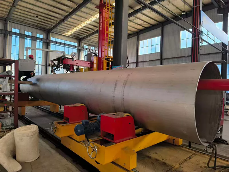 نحن نقوم بتشغيل العديد من خطوط إنتاج الأنابيب الملحومة المصنوعة من الفولاذ المقاوم للصدأ على نطاق واسع. تم تجهيز خط الإنتاج الرئيسي بآلة تشكيل بالضغط الأوتوماتيكية الكبيرة بوزن 8000 طن، 13 مترًا، وعشرة خطوط لحام أوتوماتيكية بالكامل، ومرافق داعمة تشمل آلات القطع بالليزر كبيرة الحجم، وغرف اختبار التصوير الشعاعي بالأشعة السينية، وخزان التخليل بطول 15 مترًا، وفرن المعالجة الحرارية ذو السعة الكبيرة.